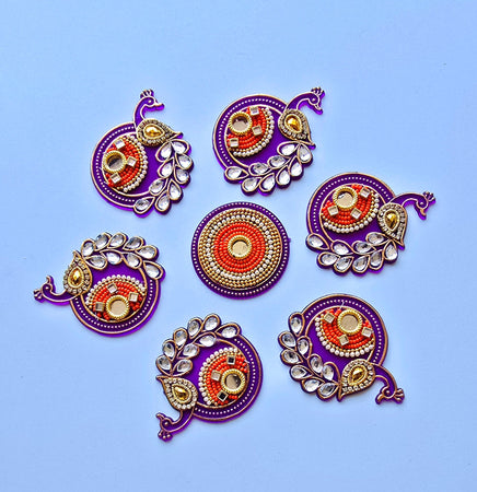 Acrylic Paisley Rangoli Set - Multicolor Kundan & Mirror Work Floor Decor